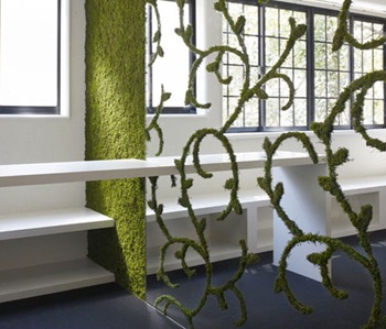 It took two weeks to apply the moss on the wallpaper, designed by his artist wife.